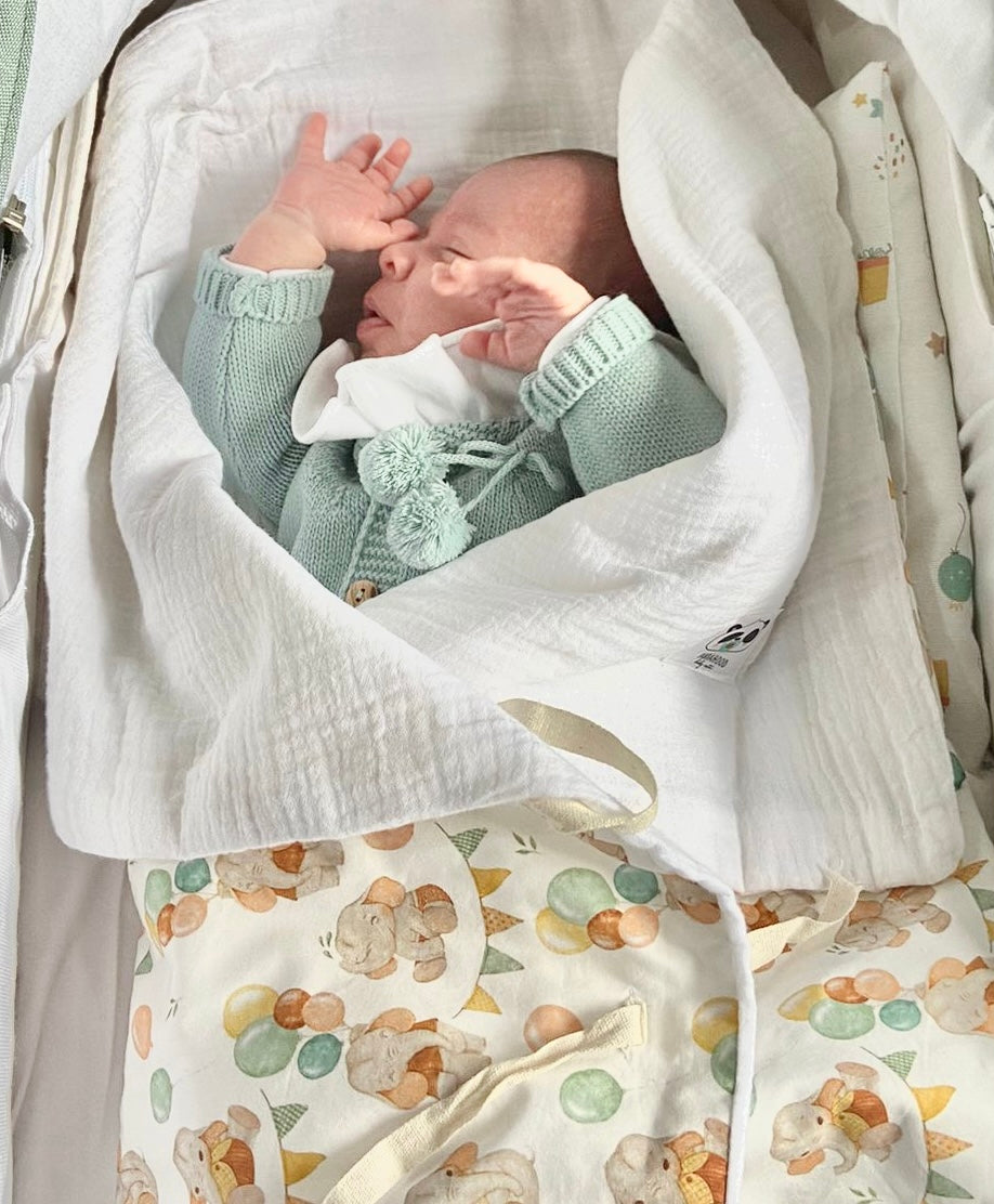 Suaves y acogedoras confeccionadas algodón orgánico. El complemento perfecto para el descanso de tu bebé. Tanto si está en el nido o de paseo, le ayudan a mejorar el sueño ya que se sentirá calentito y seguro.