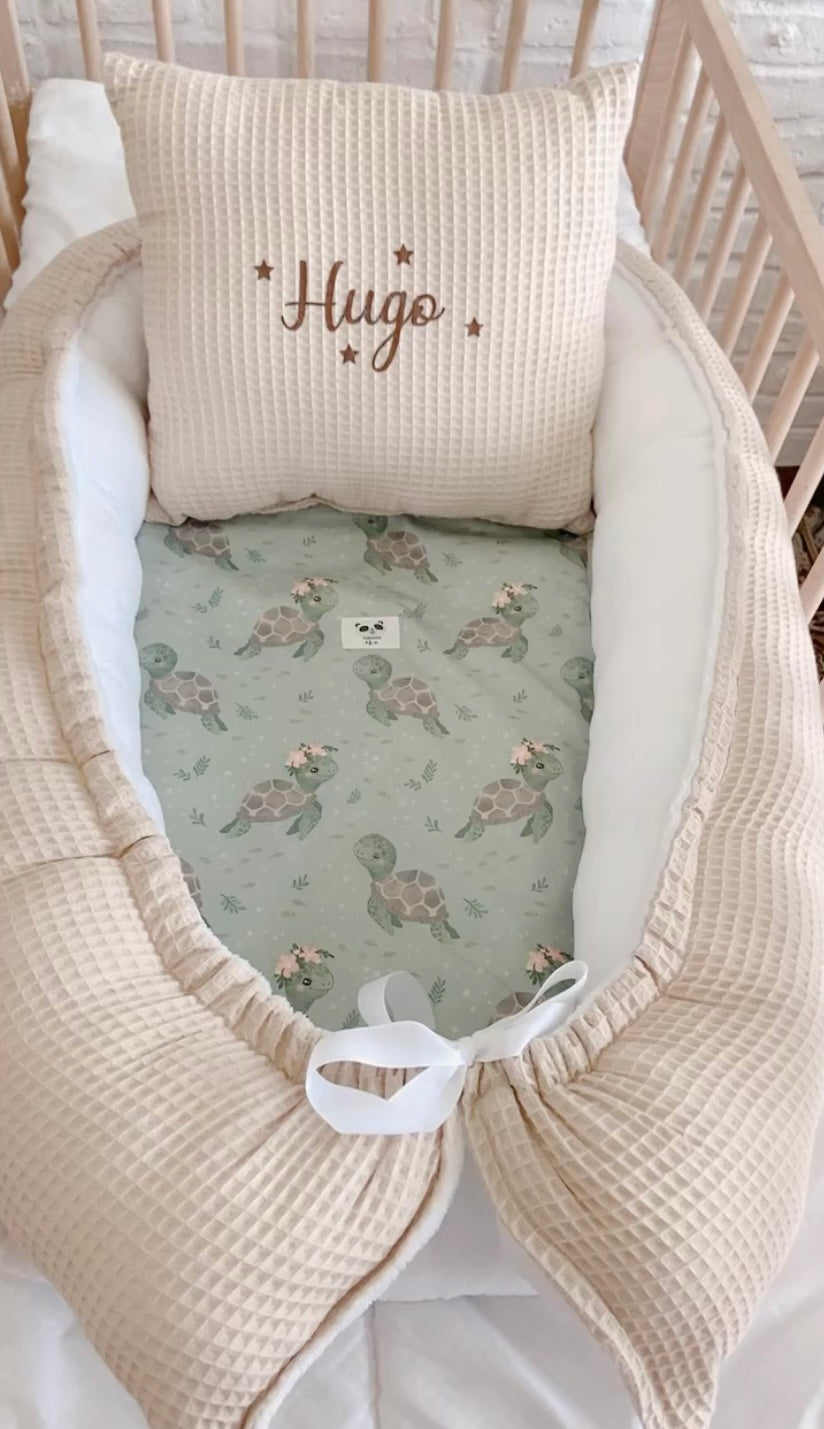 Pack Baby Tortuguita Ternura (nido, manta y cojín personalizado)