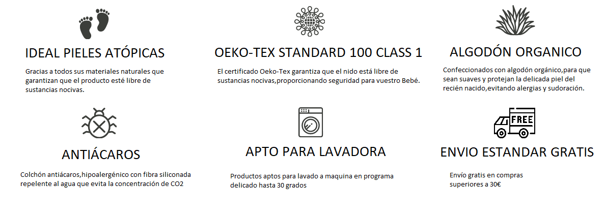 Tejido de algodón orgánico, rulo de fibra hueca siliconada y colchón HR con la firmeza ideal para el bebé . Han sido testados para que sea un espacio que arrope a tu bebé de forma segura. Suave, hipoalergénico y muy transpirable.